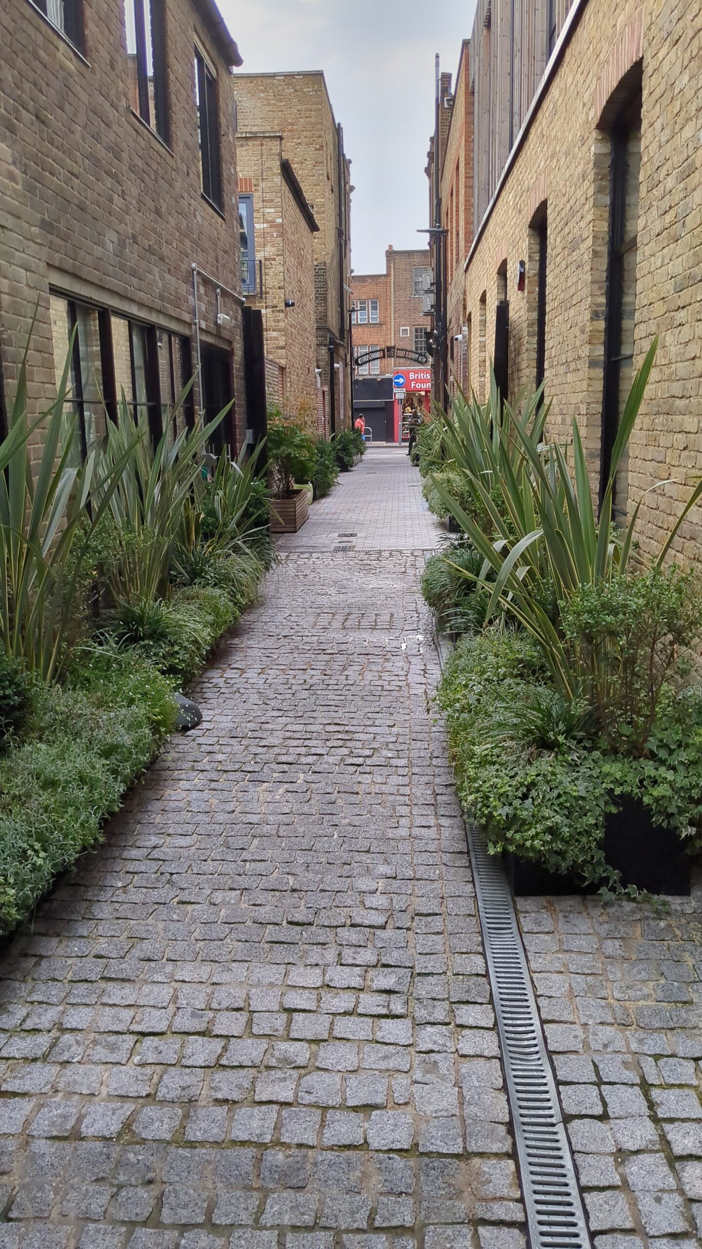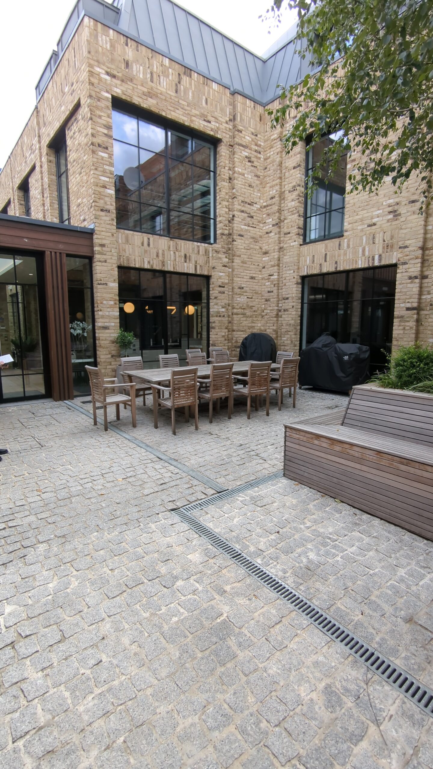However, the end result it’s a world away from the hustle and noise of King Street, with attractive planting down the former roadway, taking you to a not insubstantial 200sqm office development, built to BREEAM ‘excellent’ standards, with a welcoming reception area. Tucked away past the shared courtyard with pizza oven and BBQ are further offices, which were – according to the planning portal – originally intended as mews houses, where the former woodsheds were located between the backs of the houses in Cambridge Grove and Argyle Place. There are a few more photos on our Instagram
