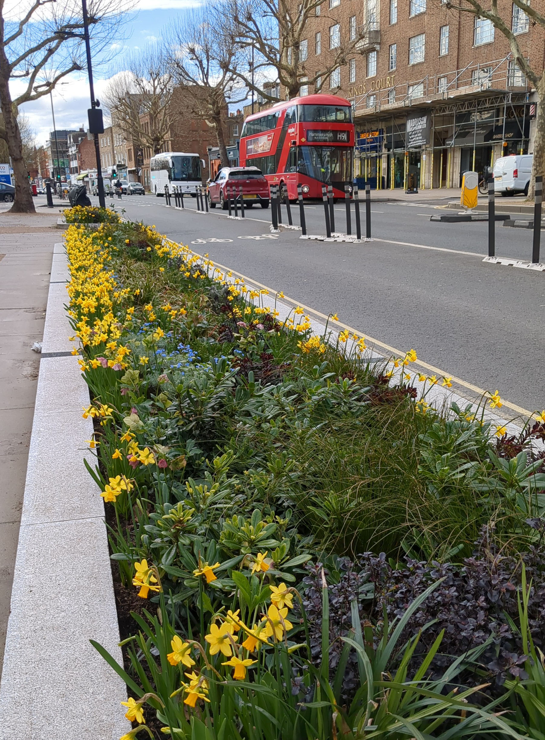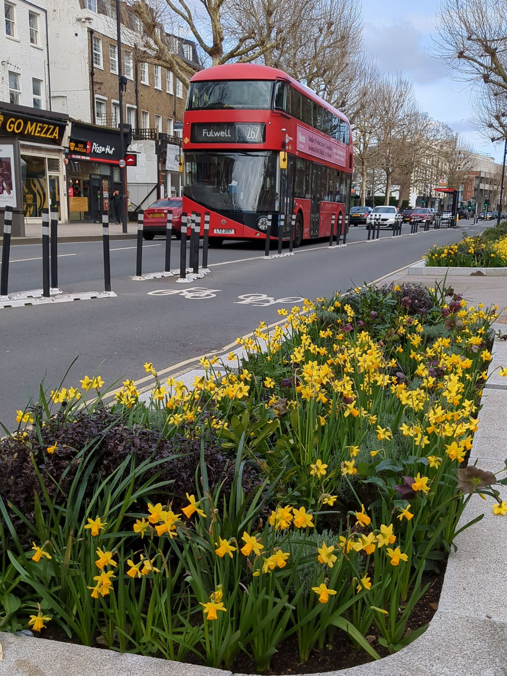 While it’s good to see this large longstanding establishment being reinvigorated – and in its original function – despite the 4.6 Google review ratings, the unsympathetic paint scheme, the brand’s generic plastic trees, loud signage, and pavement encroachments don’t seem to do the streetscape or building justice. Rather than help make the case for a vibrant sports bar, the additions seem to detract from an otherwise valiant effort to improve the frontage with its many thriving window boxes, and planting in the garish containers next to the trees, which unlike them, is actually real.