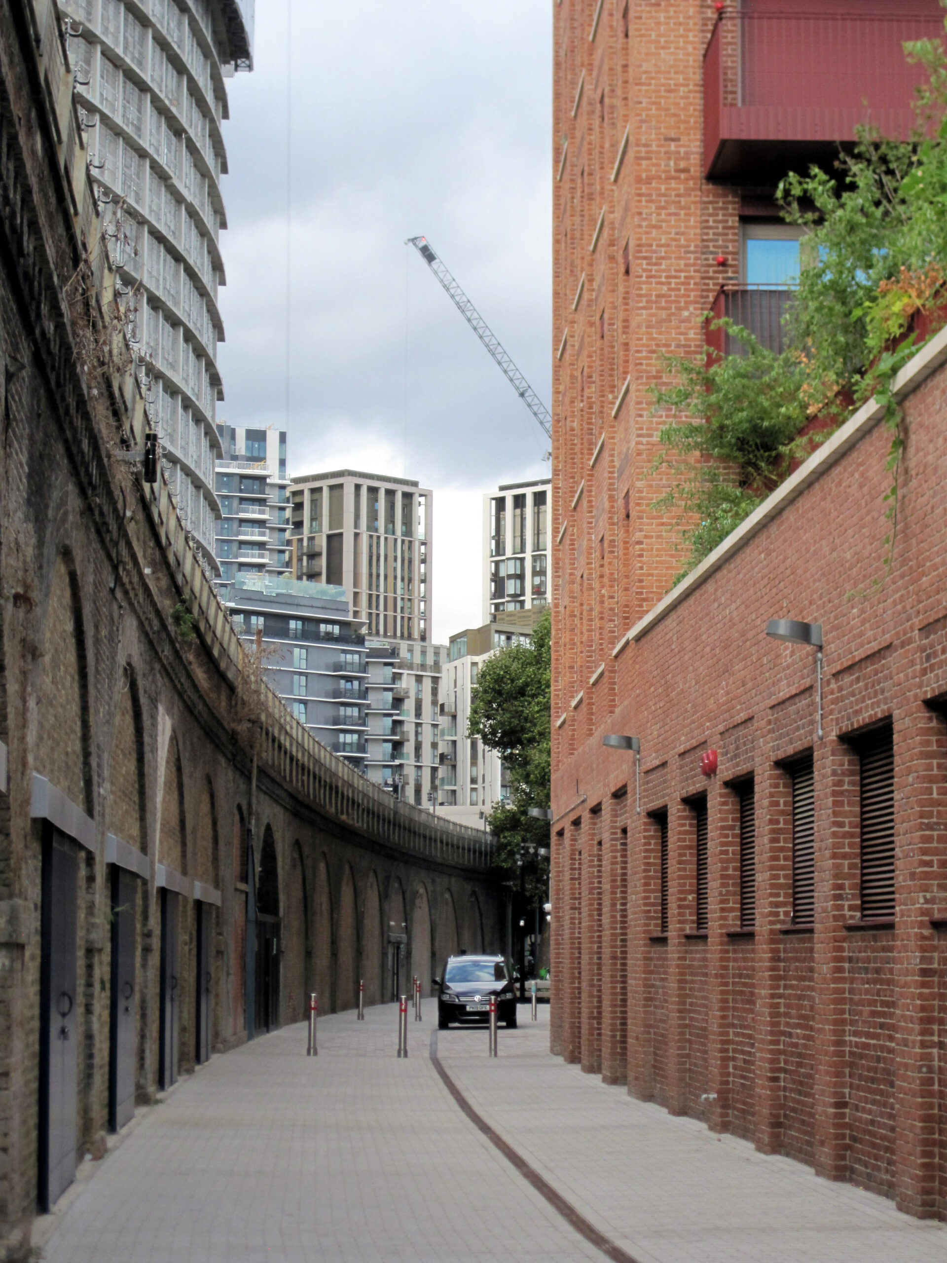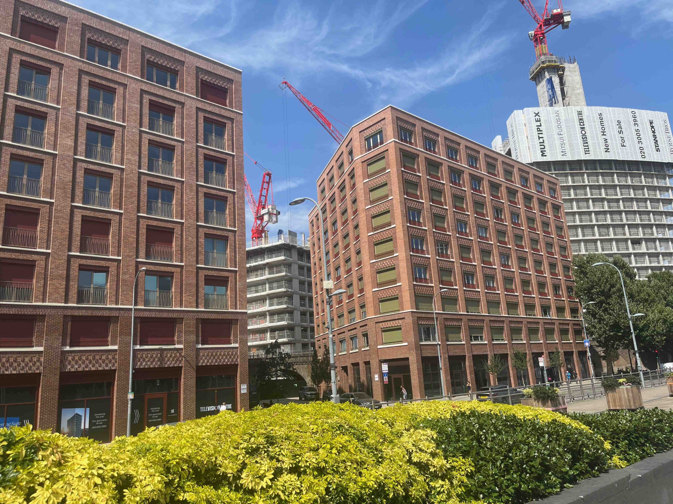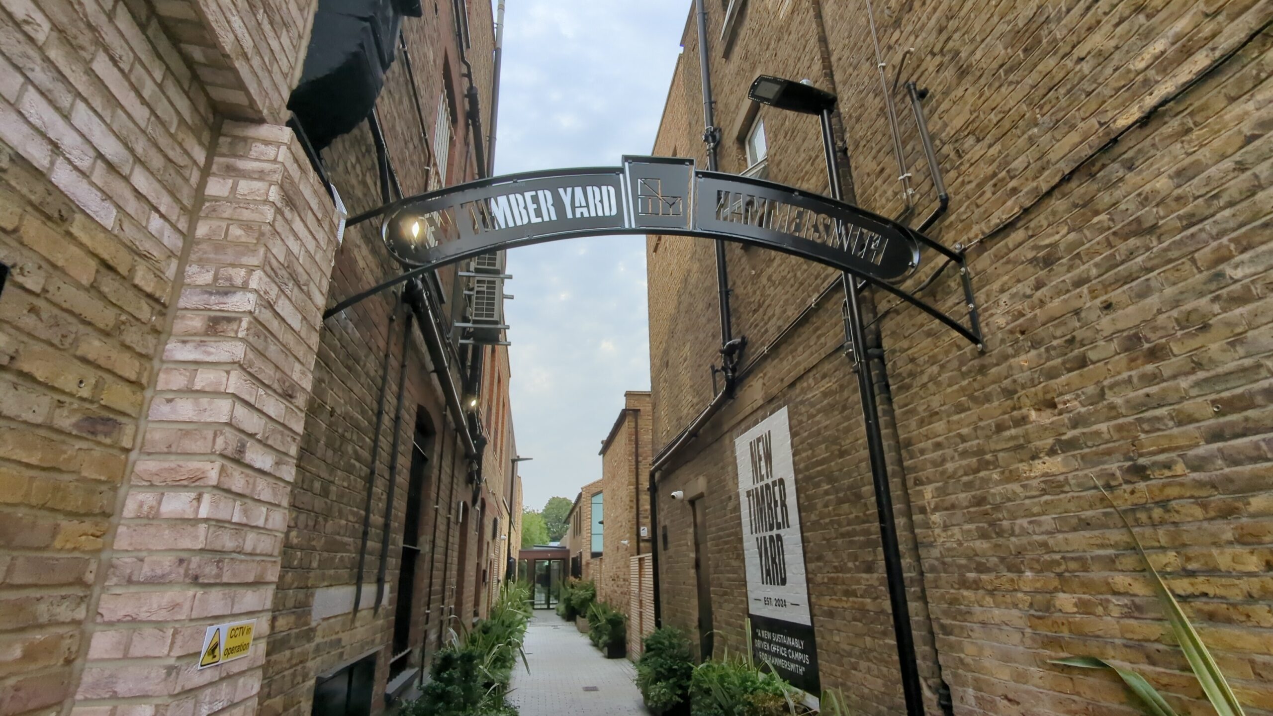 Hidden away down a tiny lane known as Dimes Place just off King Street, is a new commercial development known as The New Timber Yard, because it was formerly the home of Moss Timber Merchants (by Royal Appointment, specialist Timber Merchant). Having been established for over a hundred years, they moved out to Greenford around 2016, and for a couple of years Dimes Place appeared regularly on our agenda for various reasons, including a change of developer, changes and densification of design, according to the Chairman’s annual report. The site has a lot of adjacency with neighbours all around as the photos show, and the site is somewhat Tardis-like, in that what you see from the street is very much less than the whole.