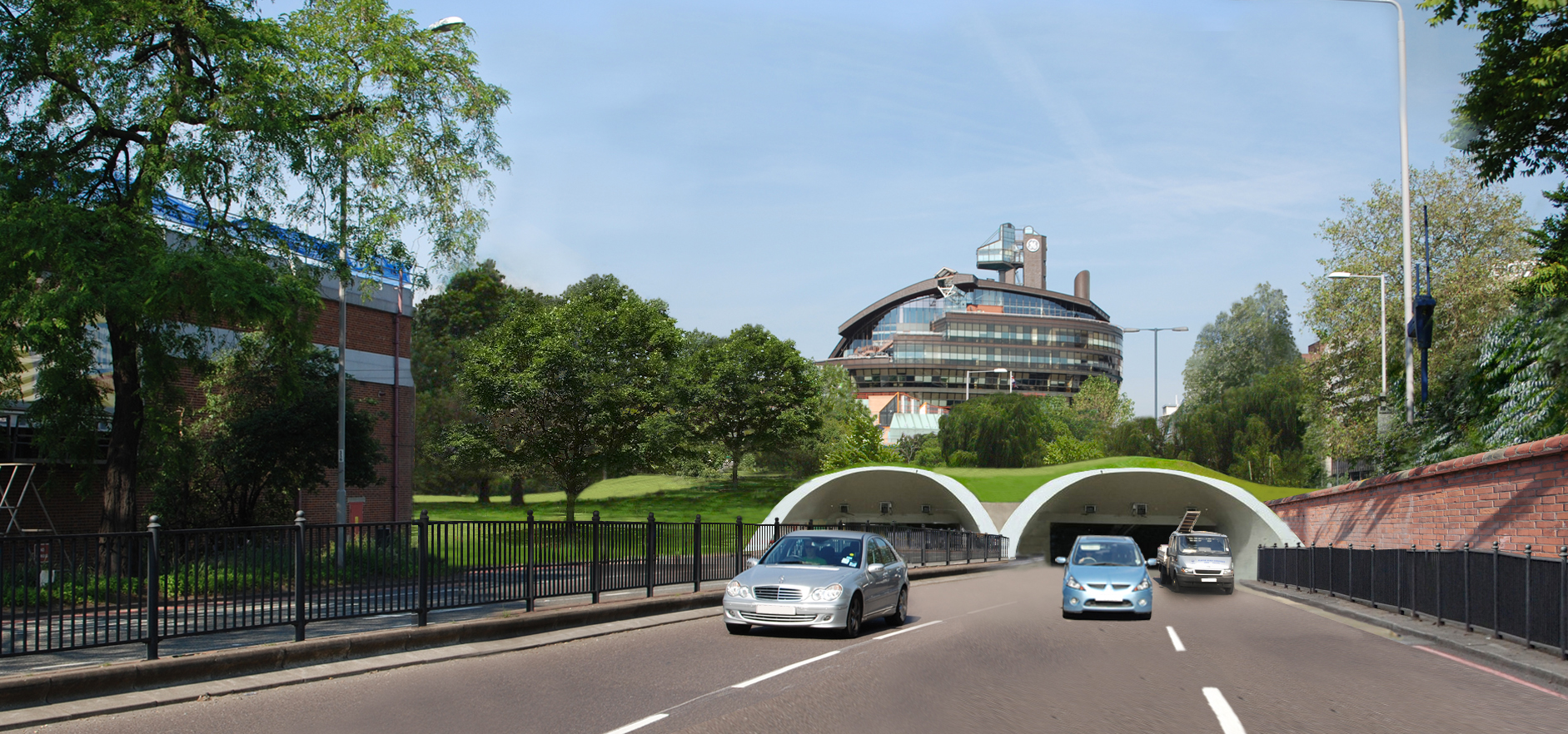 Lawn House stands on the corner of The Lawn and Uxbridge Road, next to 2023’s award-winning Hoxton Hotel, partly shown. Previously a Barclays Bank and now vacant, it provides the opportunity to complete The Lawn’s decade-long transformation into a series of hotels with improved public realm. This hotel is proposed to contain 130 rooms, 60% with kitchenettes.