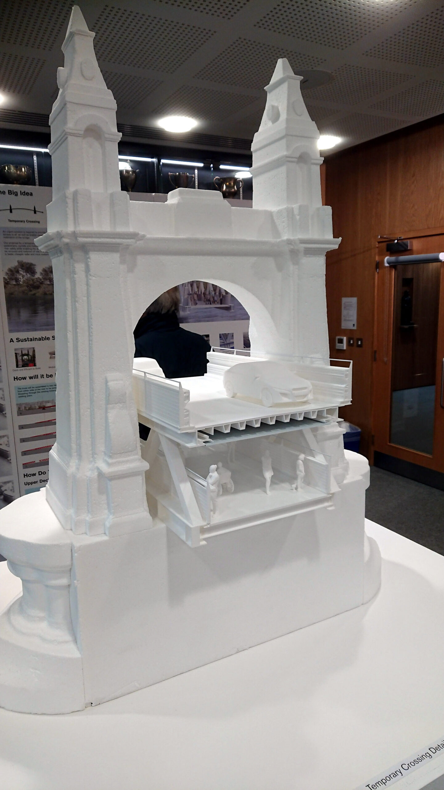 In the last week there have been well-publicised consultation meetings either side of the river, covering the repair and refurbishment of the bridge together with proposed Foster/COWI temporary bridge. Below are photos of the models of the proposals, but there’s one further public exhibition in Barnes this Saturday – details in the diary