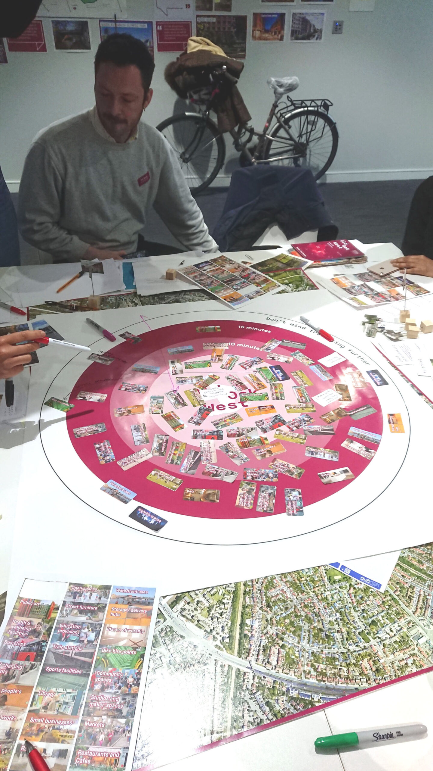 The fashionable subject of 15 minute cities was aired as we show above, which these days is a byword for walking and cycling. We were asked to prioritise what type of infra should be located in annular zones 5 minutes’ walk apart from the centre. The range of views you can see shows how difficult placemaking can be, not least with a lack of an identifiable ‘centre’ or even definition of what a centre looks like, causing significant consternation on our table. In another similarity with Earls Court, we didn’t get a strong steer from OPDC as to any particular identity, making the area again fall into the awkward category of all things to all (wo)men.