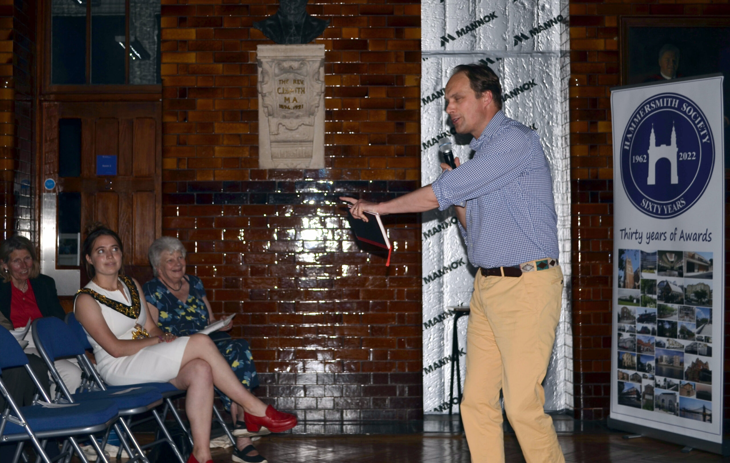 We were delighted to announce our 2022 Awards at the AGM at Latymer Upper School on Wednesday 22nd June, introduced by committee member Derrick Wright and kindly presented by our patron, Cllr Emma Althorp, the new Mayor of Hammersmith & Fulham. The large number of members and supporters present were provided excellent hospitality for which we would like to thank Latymer. Full details and a narrative are posted on our 2022 Awards page; more AGM photos and administrative documents are posted on our 2022 AGM page.